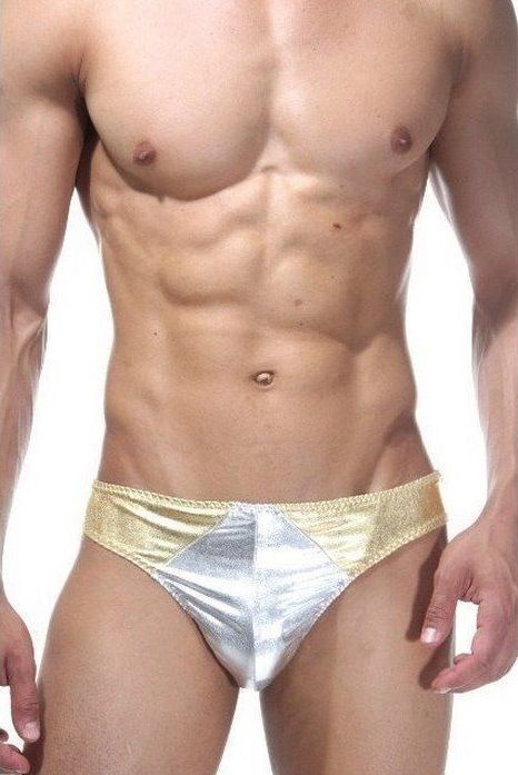 Блестящие серебристо-золотистые трусики-тонги.