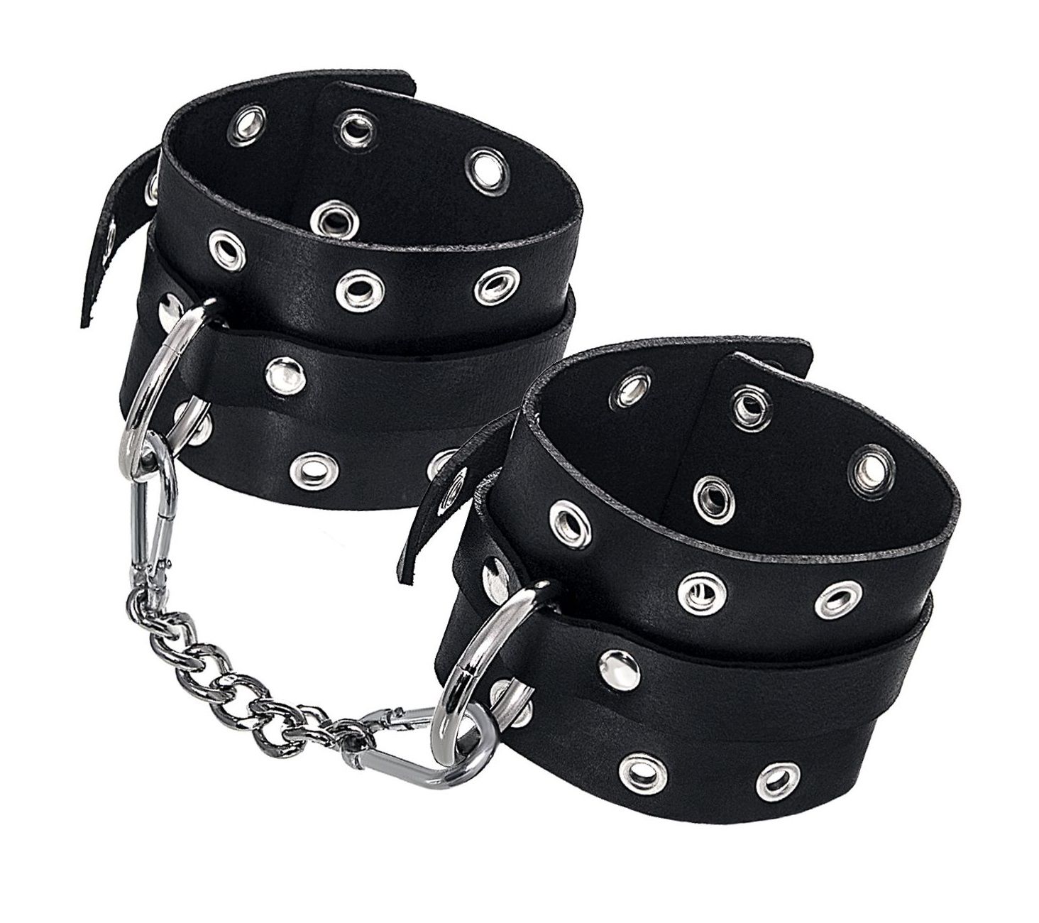 Эти однослойные кожаные наручники с люверсами могут стать стильным аксессуаром, а могут послужить вашим целям по своему прямому назначению. Частичное обездвиживание и невозможность двигать руками дают вам полную власть над партнером – взрослые игры для взрослых. Наличие двух колец и карабинов, соединенных между собой металлической цепочкой, позволяет использовать изделие как раздельно – аксессуар-манжеты, так и как наручники для фиксации. К широким металлическим кольцам также можно присоединить и другие аксессуары при помощи карабинов. Благодаря универсальному размеру наручники могут использоваться и мужчинами, и женщинами. Размер легко регулируется с помощью металлических пряжек, органично вписывающихся в общий стиль. Длина манжет - 20 см, ширина - 6,5 см. Длина сцепки - 13 см.