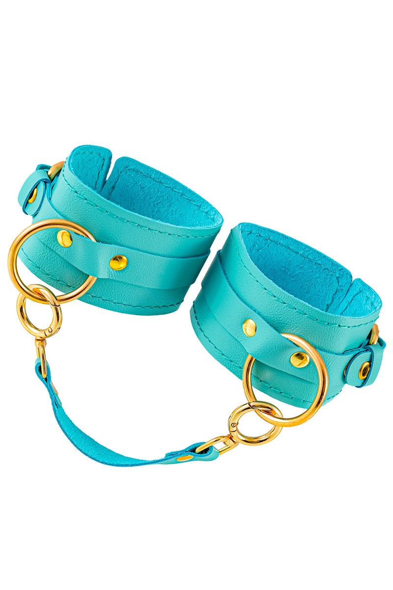 Готовы играть по-взрослому? Не бойтесь своих желаний! Основатели бренда уверены: лучший способ избавиться от искушения - поддаться ему! Добавьте пикантную деталь в ролевую игру и воплотите самую смелую сексуальную фантазию в реальность! Эти однослойные кожаные голубые (бирюзовые) оковы со строчкой в тон кожи могут стать стильным аксессуаром, а могут послужить вашим целям по своему прямому назначению. Частичное обездвиживание и невозможность двигать руками или ногами дают вам полную власть над партнером – взрослые игры для взрослых. Наличие двух колец и карабинов, соединенных между собой кожаным ремешком, позволяет использовать изделие как раздельно – аксессуар-манжеты, так и как оковы для фиксации. К широким металлическим кольцам также можно присоединить и другие аксессуары при помощи карабинов. Благодаря универсальному размеру оковы могут использоваться и мужчинами, и женщинами. Размер легко регулируется с помощью металлических пряжек, органично вписывающихся в общий стиль. Длина манжет – 25 см, ширина - 6,5 см. Длина сцепки – 17 см.
