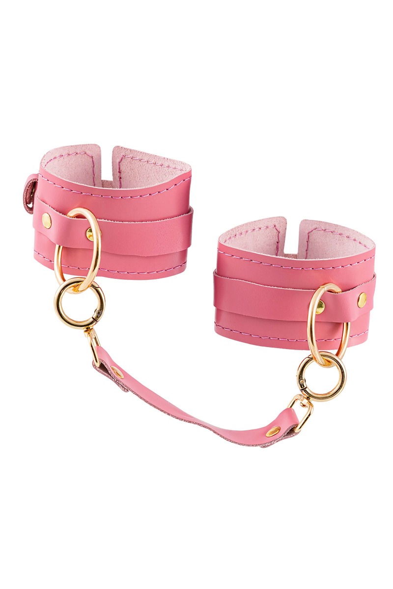 Готовы играть по-взрослому? Не бойтесь своих желаний! Основатели бренда уверены: лучший способ избавиться от искушения - поддаться ему! Добавьте пикантную деталь в ролевую игру и воплотите самую смелую сексуальную фантазию в реальность! Эти однослойные кожаные розовые оковы со строчкой в тон кожи могут стать стильным аксессуаром, а могут послужить вашим целям по своему прямому назначению. Частичное обездвиживание и невозможность двигать руками или ногами дают вам полную власть над партнером – взрослые игры для взрослых. Наличие двух колец и карабинов, соединенных между собой кожаным ремешком, позволяет использовать изделие как раздельно – аксессуар-манжеты, так и как оковы для фиксации. К широким металлическим кольцам также можно присоединить и другие аксессуары при помощи карабинов. Благодаря универсальному размеру оковы могут использоваться и мужчинами, и женщинами. Размер легко регулируется с помощью металлических пряжек, органично вписывающихся в общий стиль. Длина манжет – 25 см, ширина - 6,5 см. Длина сцепки – 17 см.