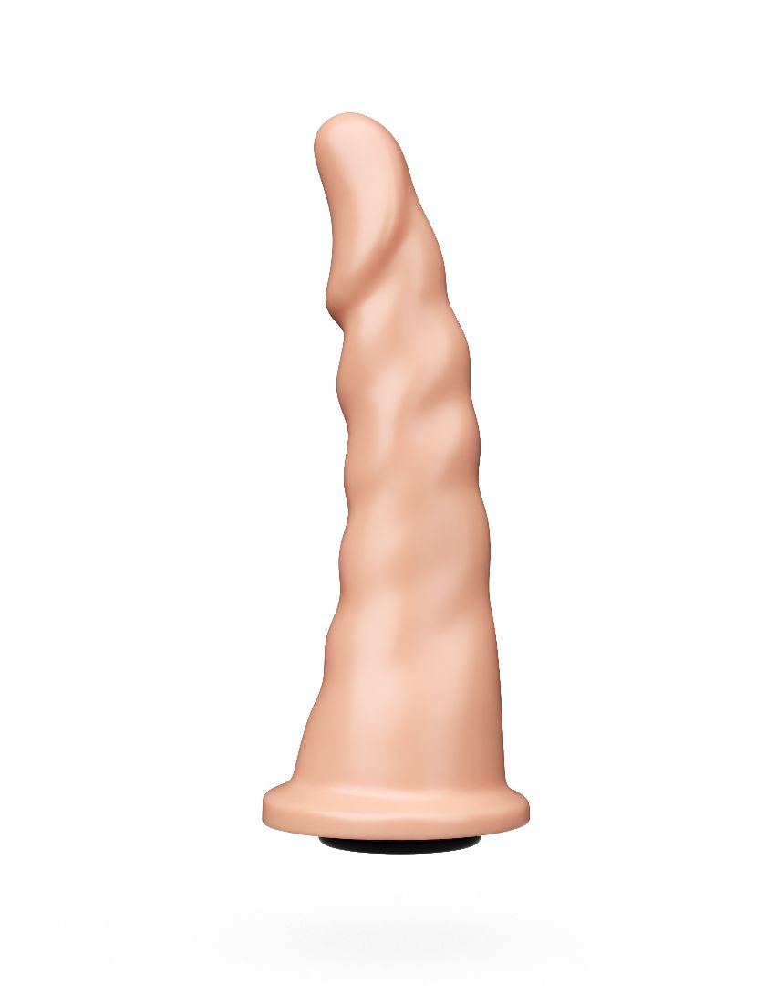 Форма насадки входит в рейтинг самых продаваемых насадок и плагов. Ее форма подходит как для вагинального, так и анального секса. Полужесткая рецептура материала по жесткости близка к характеристикам фаллоса. Насадка имеет платформочку для фиксации с помощью кольца страпона и снабжена коннектором, если конструкция пояса предусматривает другой способ фиксации. Универсальность этой насадки не только в этом, но и в том, что тонкая верхняя часть обладает гибкостью, легко вводится и тем самым снижает риск травматизации при узком или ригидном влагалище, анусе.