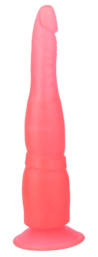 Этот тоненький фаллос из розового геля выглядит абсолютно реалистично: ярко выраженная головка, слегка вытянутая кверху, и легкий рельеф в виде складочек имитируют формы настоящего пениса. Интим-игрушка для анальной стимуляции имеет небольшую присоску, которая поможет вам прикрепить изделие к любой ровной поверхности и освободить руки для других ласк.